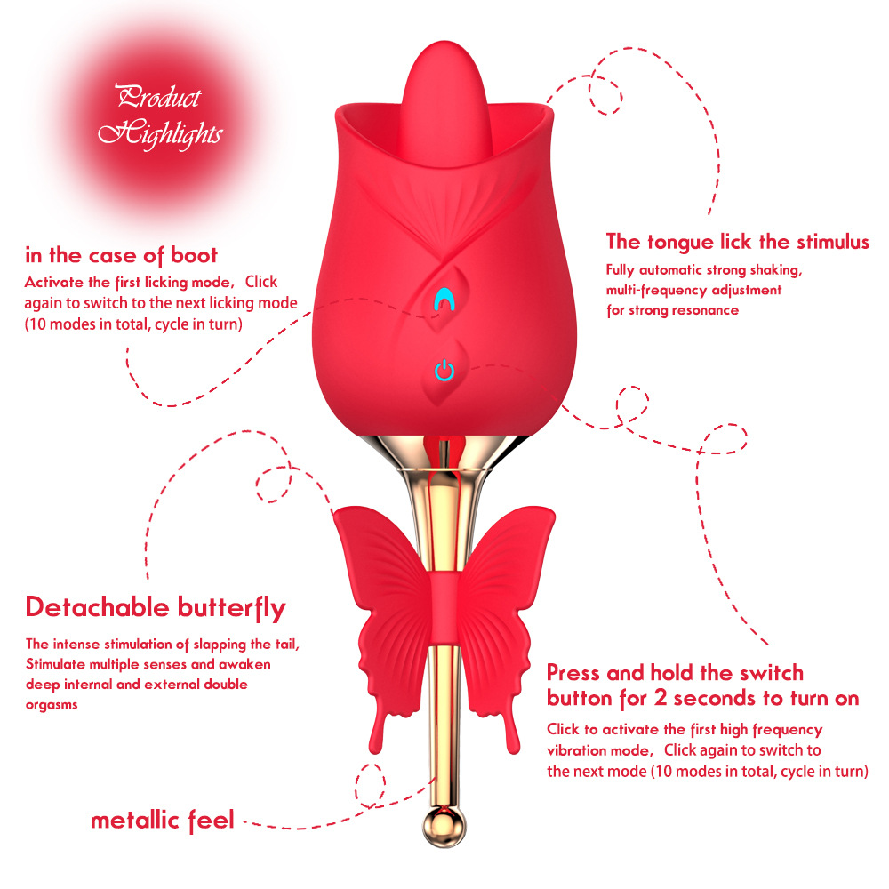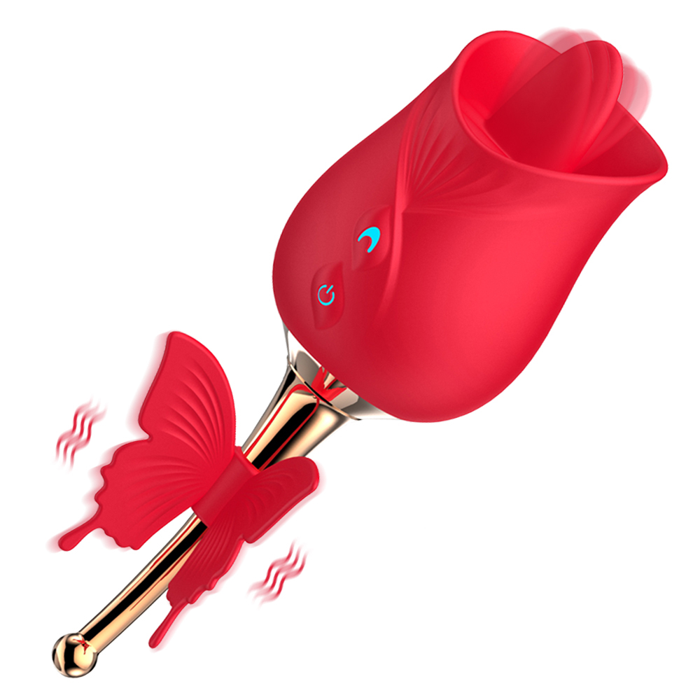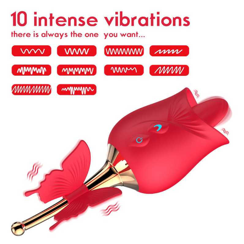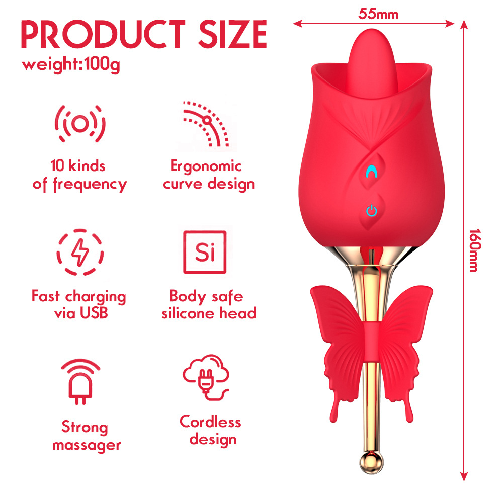 USB Charging Rose Shaped Tongue Licking Vibrator Butterfly Design Women Clitoral Stimulation Medical Silicone Waterproof 10